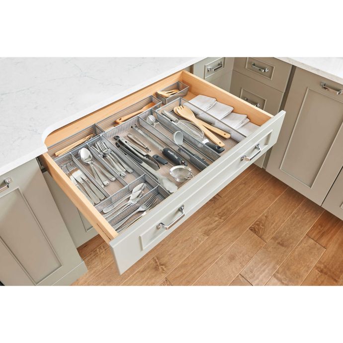 Welcome to DRAWER ESSENTIALS where you can buy quality-built wood organizers made in the USA. Our affordable inserts have choices of 3 different wood types and give you the largest array of organizer designs anywhere. Custom-sized to fit your drawers, they will enhance all of your cabinet interiors. Let Drawer Essentials help you get organized ... Items like measuring cups, stacked bowls, plastic food storage containers, dishtowels, bulky serving spoons or kitchen tools work great in deep drawers. Drawers can be a little limiting with lifting bulky items in and out of the drawer. If items will be stacked on